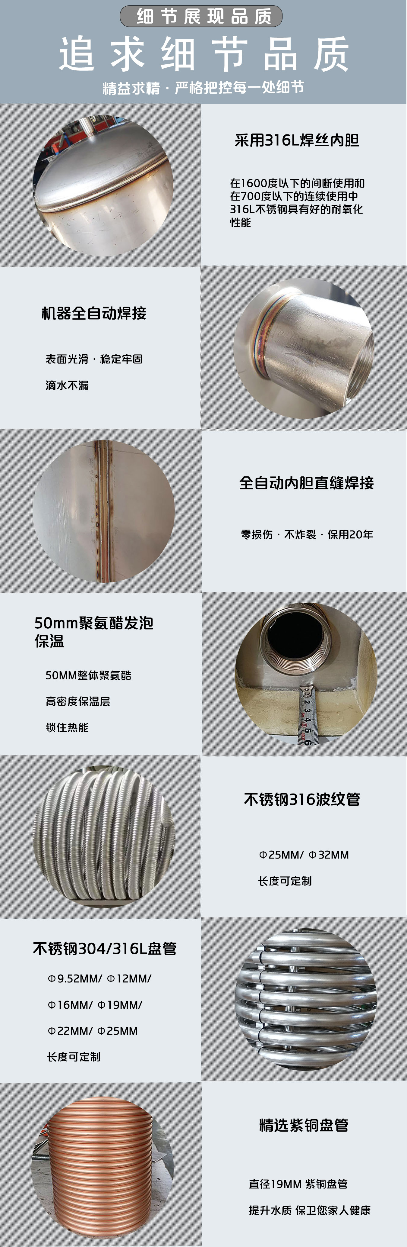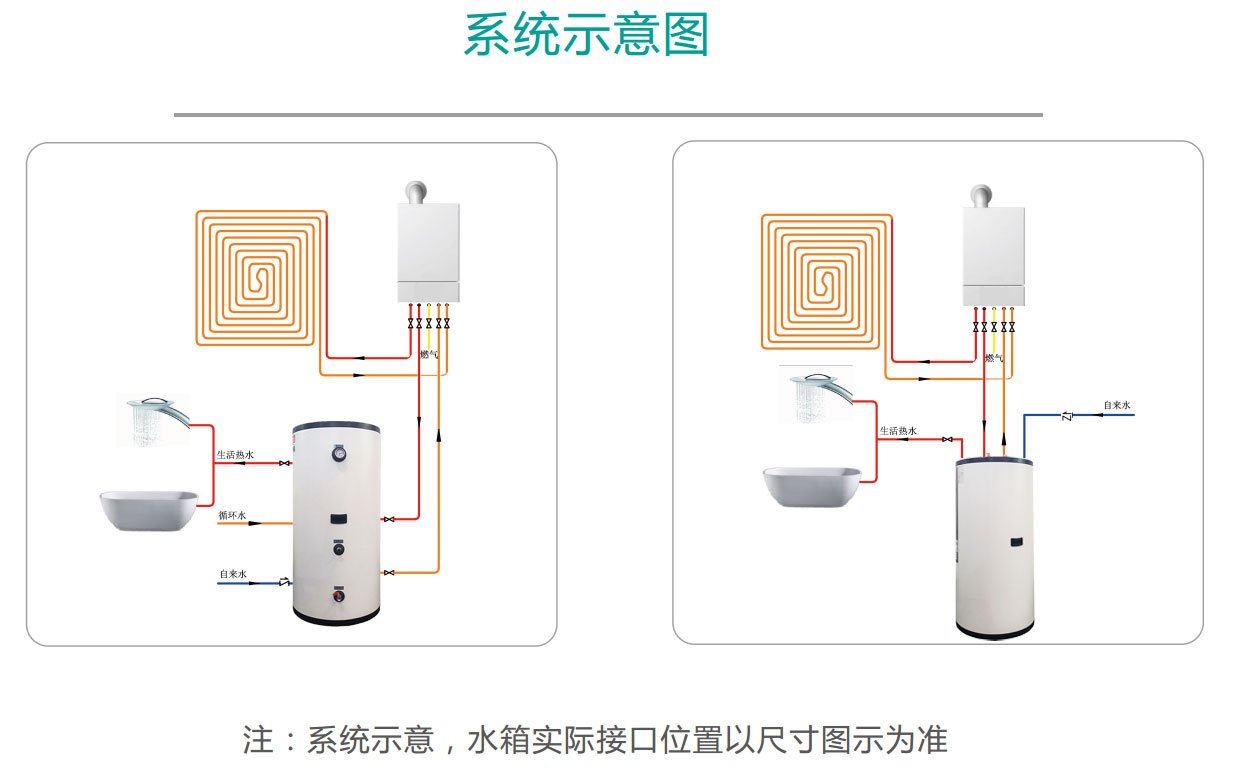 上接口单盘管水箱:实现恒温热水,提升热水品质,杜绝忽冷忽热问题。 实现即开即热,提升客户热水使用体验度。 实现多点多路供水,满足多取水点同时使用的需求。 实现系统运行更节能更高效,实现综合能效的降低。 实现系统缓冲,延长壁挂炉寿命,生活热水和地暖采暖互不干扰。