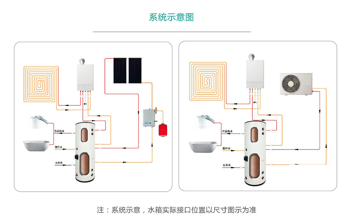 将空气能和太阳能或燃气多种能源方式组合,实现多种利用方式,好的热水体验,节能,经济。 优先使用太阳能、空气能等清洁能源,不可 再生能源天然气以及二次能源电等辅助加热,保证储热水箱24小时热水供应,同时满足采暖需求。 储热水箱与壁挂炉及其他设备配套使用能够在满足家庭地板热水采暖需求的同时满足家庭稳定的多点多路生活热水供应需求,是家庭热水的好管家。